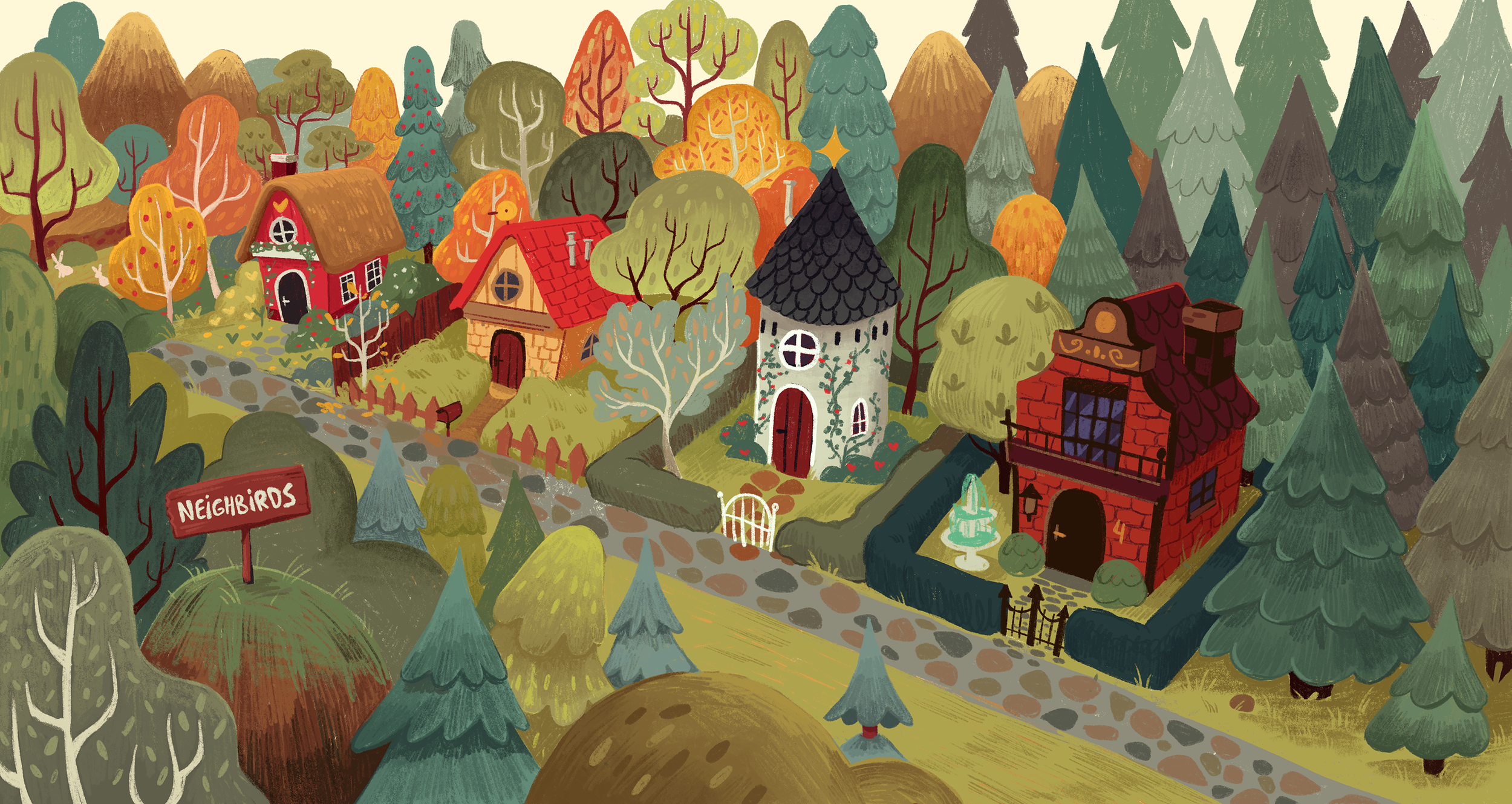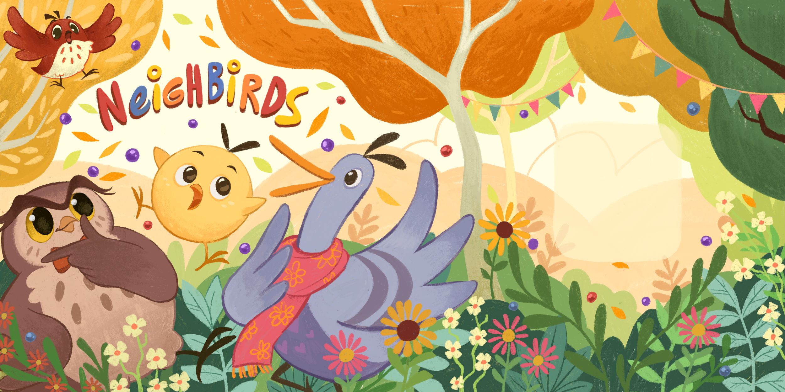 This image above serves as the opening page of my book, made during my time in the Animation Master program at St. Joost. Initially an exploration of artistic styles, but I happened to like it a lot. From there, the story of ‘Neighbirds’ started to take form.